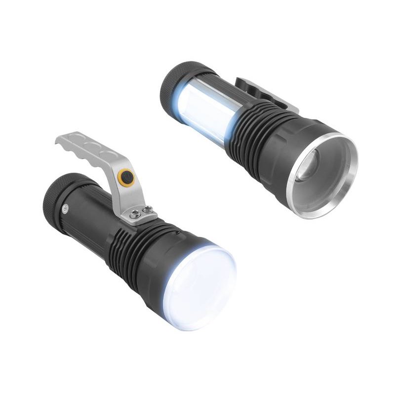 Kvalitná ručná baterka vybavená dvoma samostatnými LED zdrojmi svetla. Hlavným zdrojom je 5W dióda s veľmi silným a jasným lúčom bieleho svetla. Zaostrenie lúča je možné nastaviť, vďaka čomu je veľmi všestranná a vhodná pre mnoho situácií. Ďalším zdrojom svetla je 3W COB dióda umiestnená na rukoväti. Široký a rozptýlený svetelný lúč je ideálny napríklad na osvetlenie vnútra stanu. Užitočnou vlastnosťou COB diódy je funkcia núdzového svetla. V tomto režime baterka svieti červeno a bliká nepretržite.