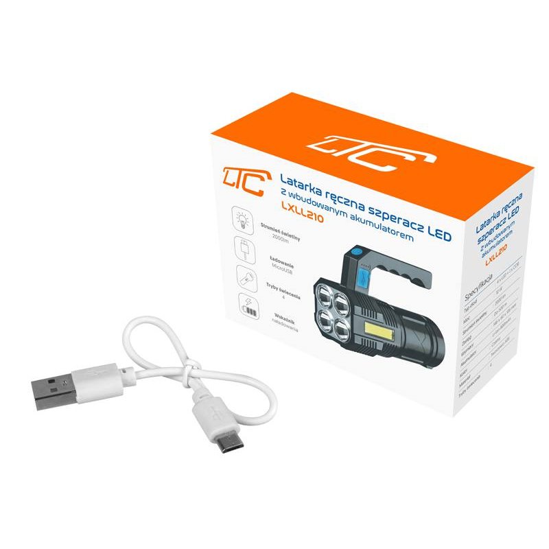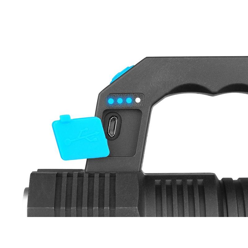 Vysokokvalitná ručná baterka, vybavená vstavanou batériou a prídavným rozptýleným svetlom.