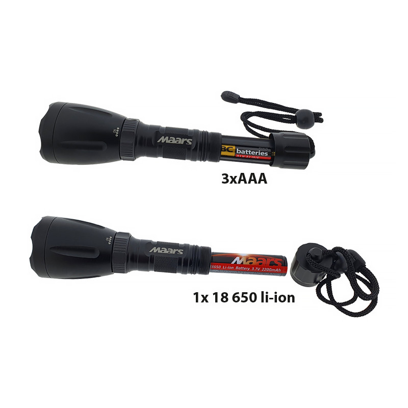 - Batéria: 1x 18650 li-ion alebo 3xAAA