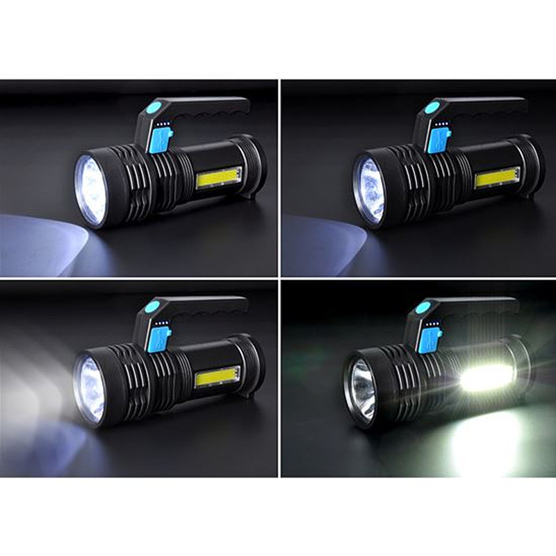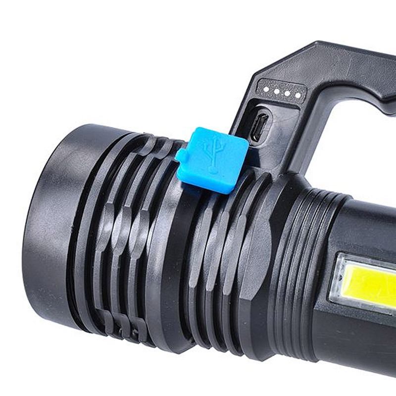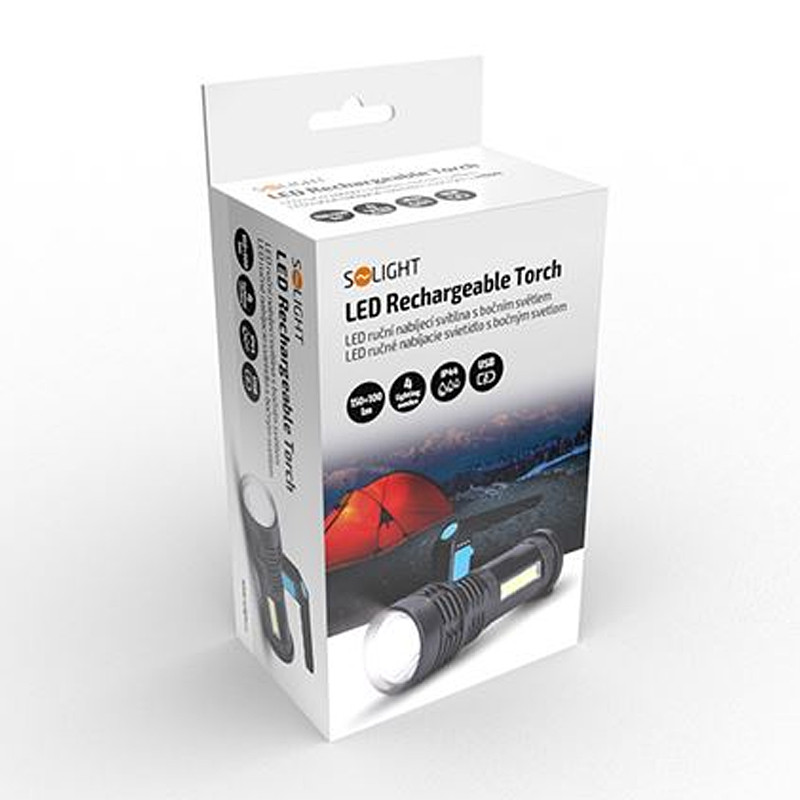 LED ručné nabíjacie svietidlo s predným a bočným zdrojom svetla.
