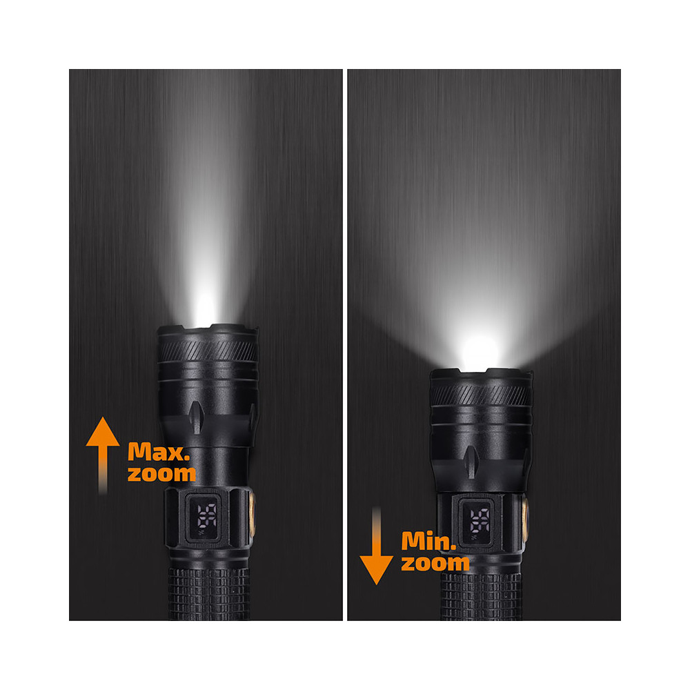Výkonné, kompaktné a praktické – také je nabíjacie LED vreckové svietidlo s displejom, ktorý zobrazuje aktuálny stav batérie v percentách. Vďaka svetelnému toku 200 lm je ideálne na každodenné použitie, cestovanie, turistiku či núdzové situácie. K dispozícii je ZOOM a tri režimy svietenia - 100%, 50%, blikanie. Prevádzková doba je až 2 hodiny v úspornom režime.