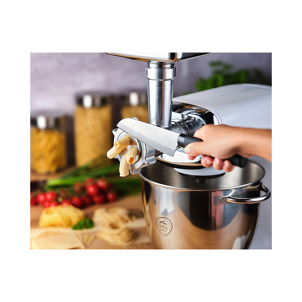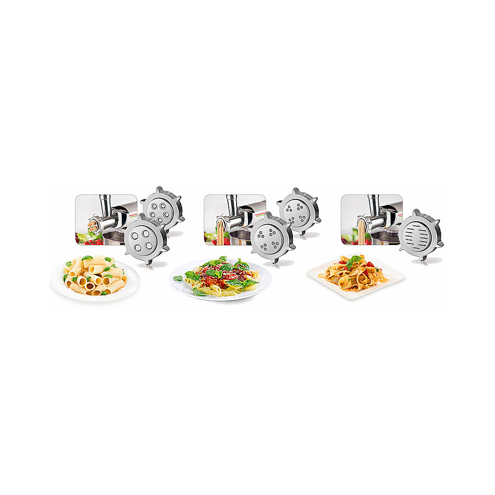 Rozšírte možnosti svojho kuchynského robota o ďalšie možnosti a pripravte si domáce cestoviny ako z Talianska! Vďaka 5 vymeniteľným nástavcom si doma pripravíte obľúbené penne, rigatoni, papperdelle, stelline či ditalini. Kvalitné nerezové prevedenie nástavcov zaručuje pevnosť a dlhú životnosť.