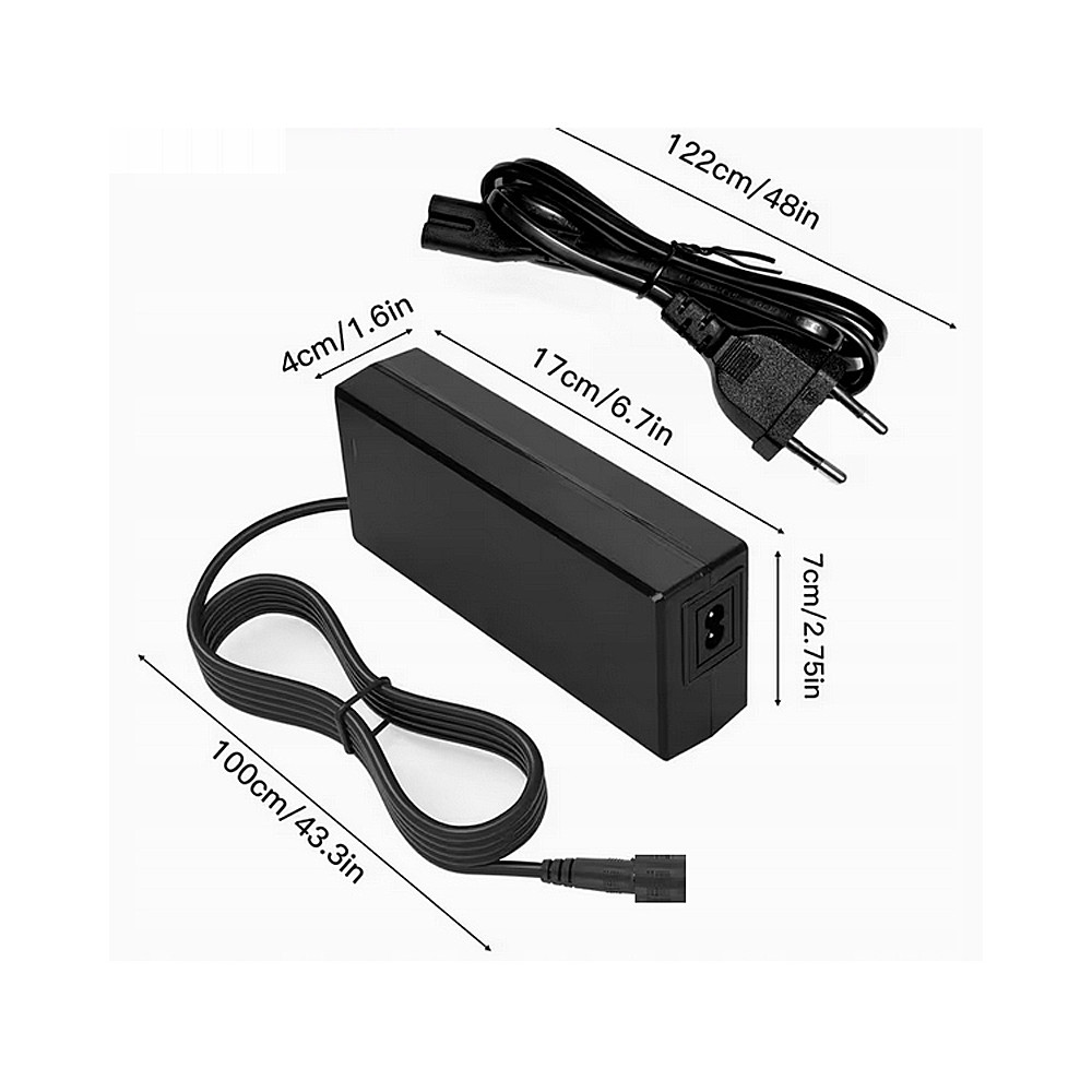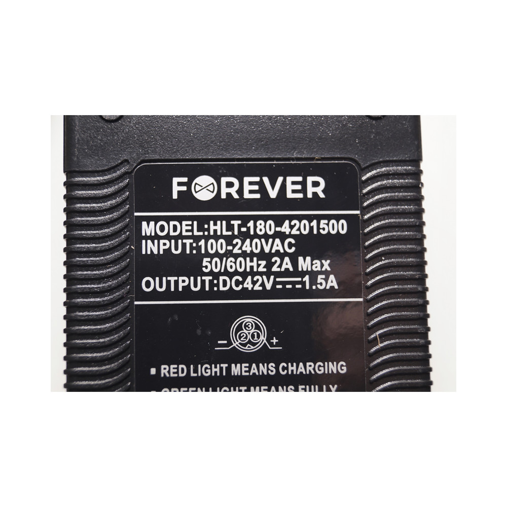 Napájací zdroj pre kolobežky a hoverboardy - model: HLT-180-4201500 • vstup: 100–240V • výstup: DC 42V 1,5A • farba: čierna