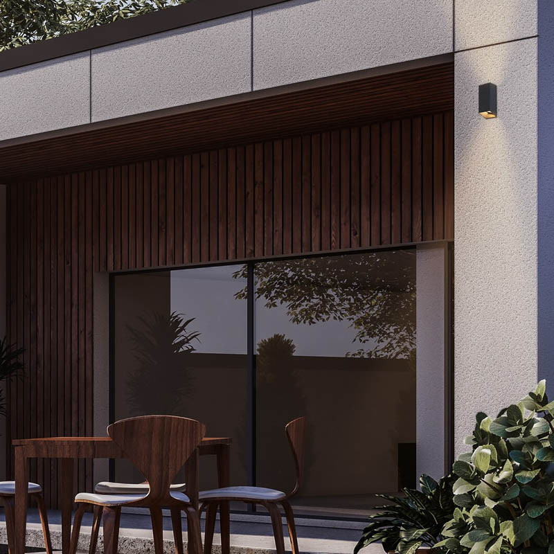 Vonkajšie LED obojstranné nástenné svietidlo, teplé biele svetlo.