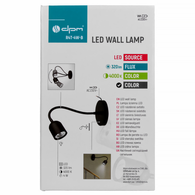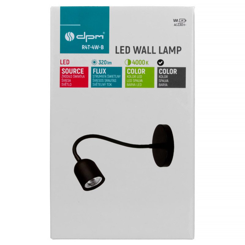 Lampa nástenná LED 4W 4000K 320lm čierna DPM R4T-4W-B