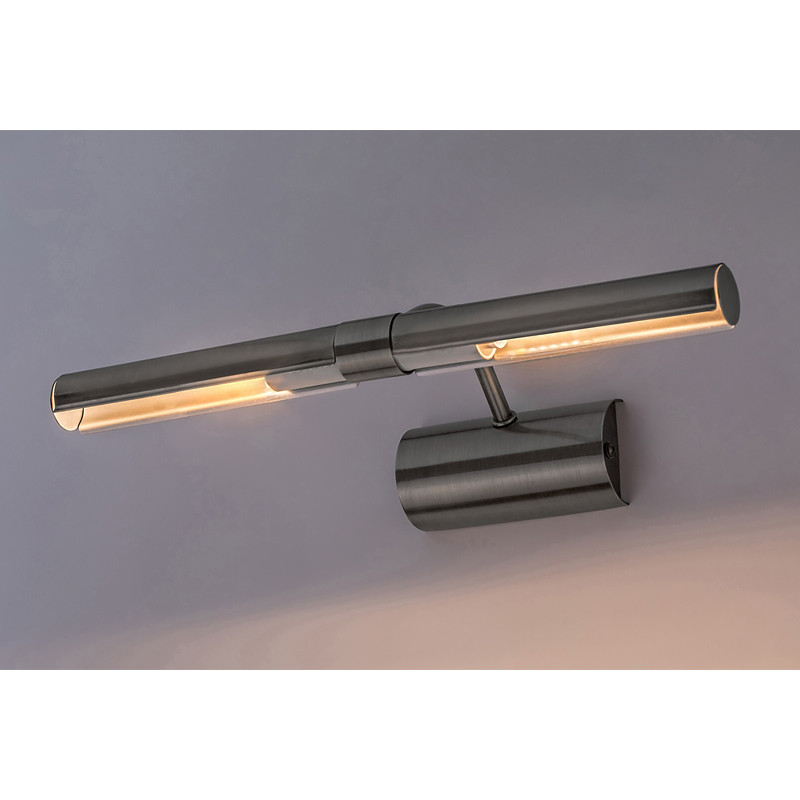 Moderné matné chrómové nástenné svietidlo - pre svetelný zdroj: E14 T25 2x max.40W • materiál: kov • ochrana: IP20 • šírka: 36,4 cm.