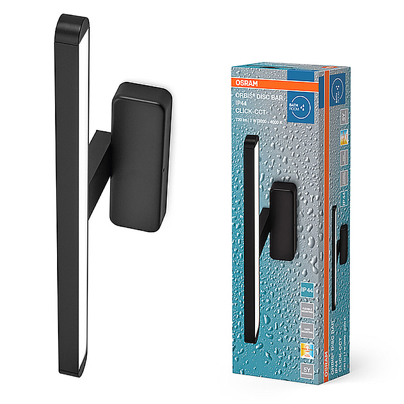 Svietidlo kúpeľňové LED nad zrkadlo 7W 3-4000K CCT 720lm IP44 čierne OSRAM Orbis Disc Bar Mirror 40CM Click CCT IP44 Black