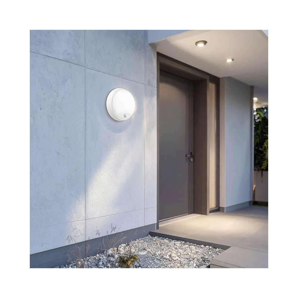Svietidlo je vybavené senzorom s detekčným uhlom 90 ° a dosahom až 8 metrov, ktorý spoľahlivo reaguje na pohyb. Čas svietenia je možné nastaviť v rozmedzí 10 sekúnd až 5 minút, rovnako ako svetelnú citlivosť v rozmedzí 3–2000 lux. Odolnosť proti vode (IP65) zaisťuje bezpečné použitie aj v exteriéri. So životnosťou 30 000 hodín, širokým uhlom svietenia 110° a indexom podania farieb Ra>80 je toto multifunkčné svietidlo ideálne pre chodby, vstupné priestory, pergoly či balkóny.