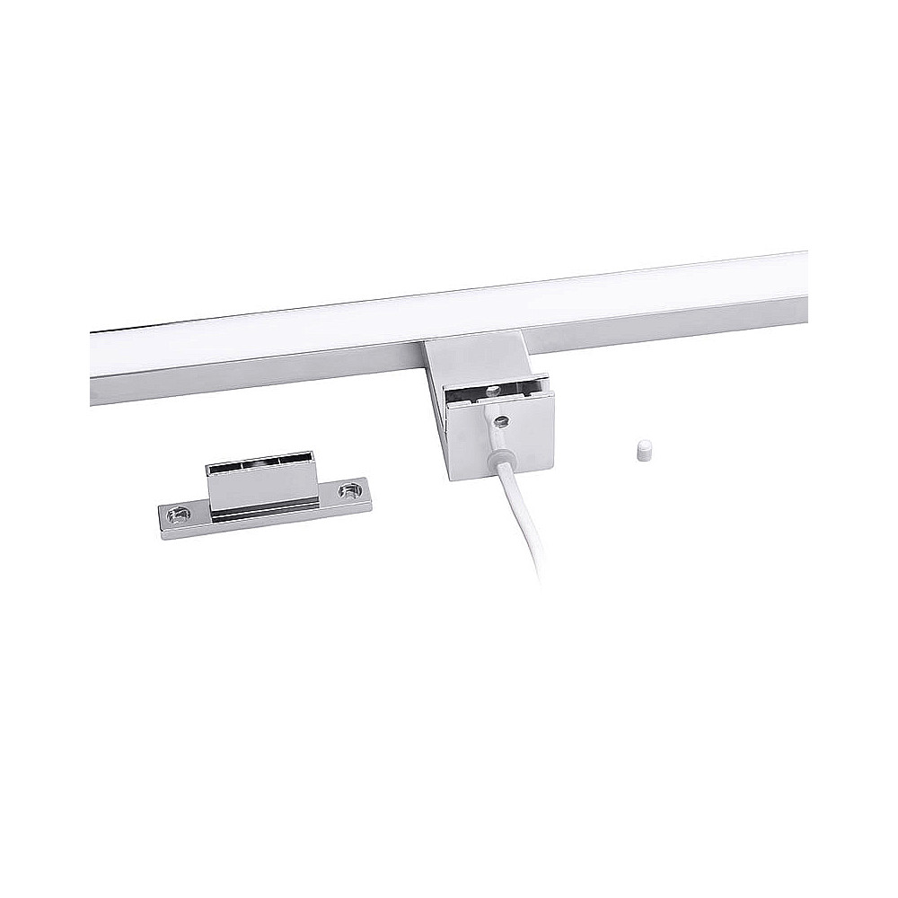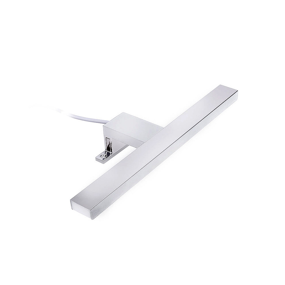 Elegantné kúpeľňové LED svietidlo s príkonom 7 W a dĺžkou 400 mm predstavuje ideálnu voľbu pre osvetlenie nad zrkadlo. Vďaka univerzálnej montáži je možné ho pripevniť priamo na zrkadlo, na stenu alebo na zrkadlovú skrinku. Svietidlo je dostupné v klasickej chrómovej variante. Osvetlenie poskytuje neutrálne biele svetlo (4000K) a svetelný tok 455 lm. Vďaka širokému vyžarovaciemu uhlu rovnomerne nasvieti priestor pred zrkadlom.