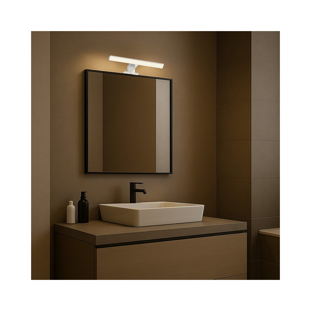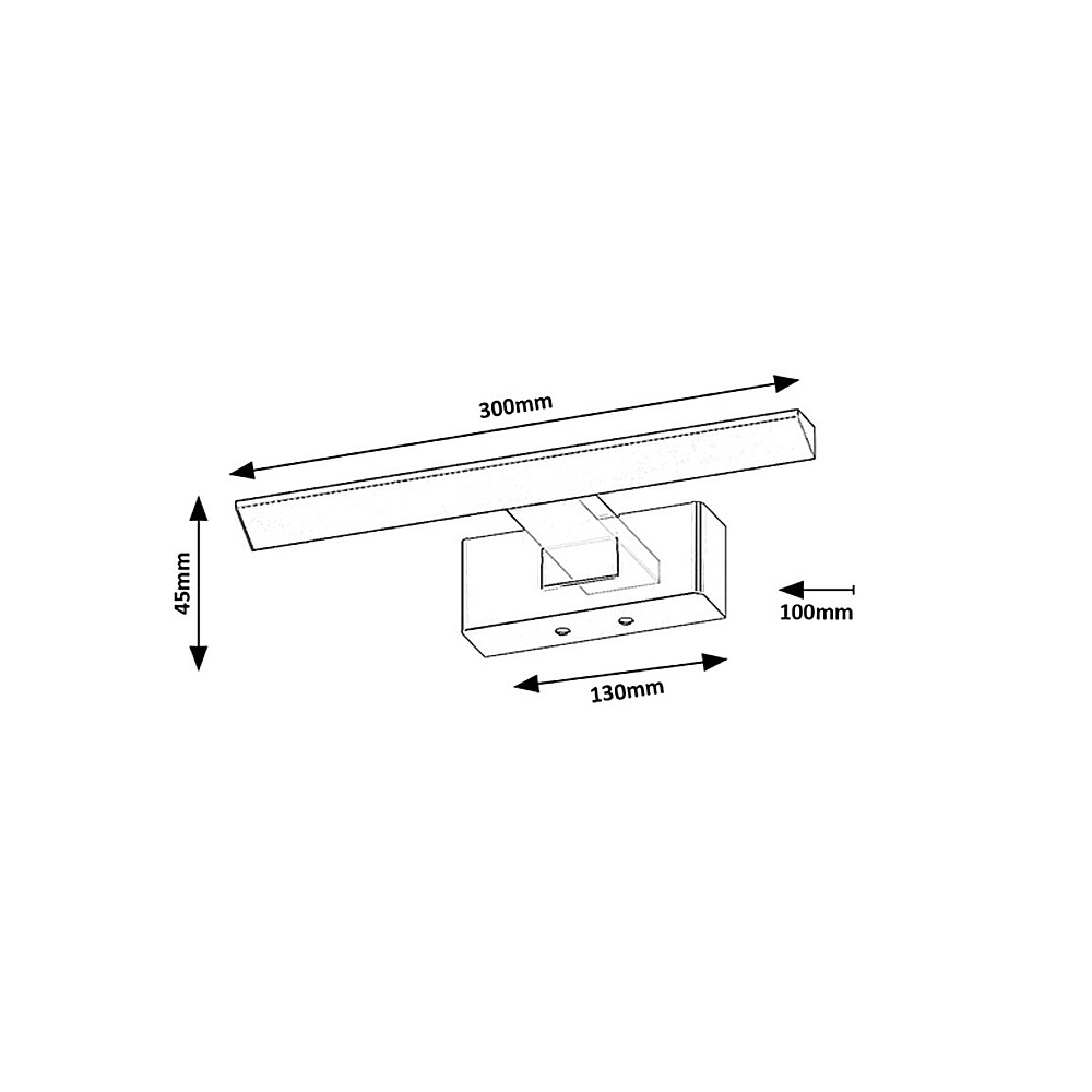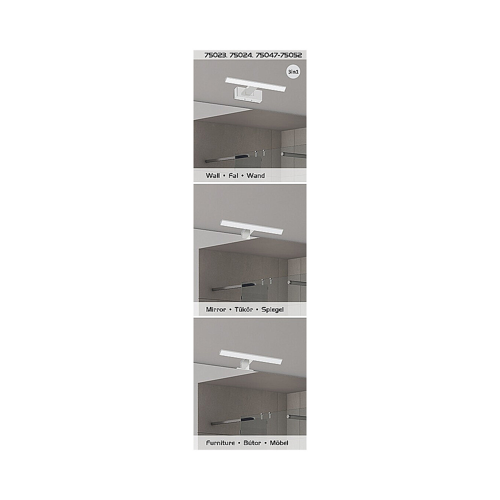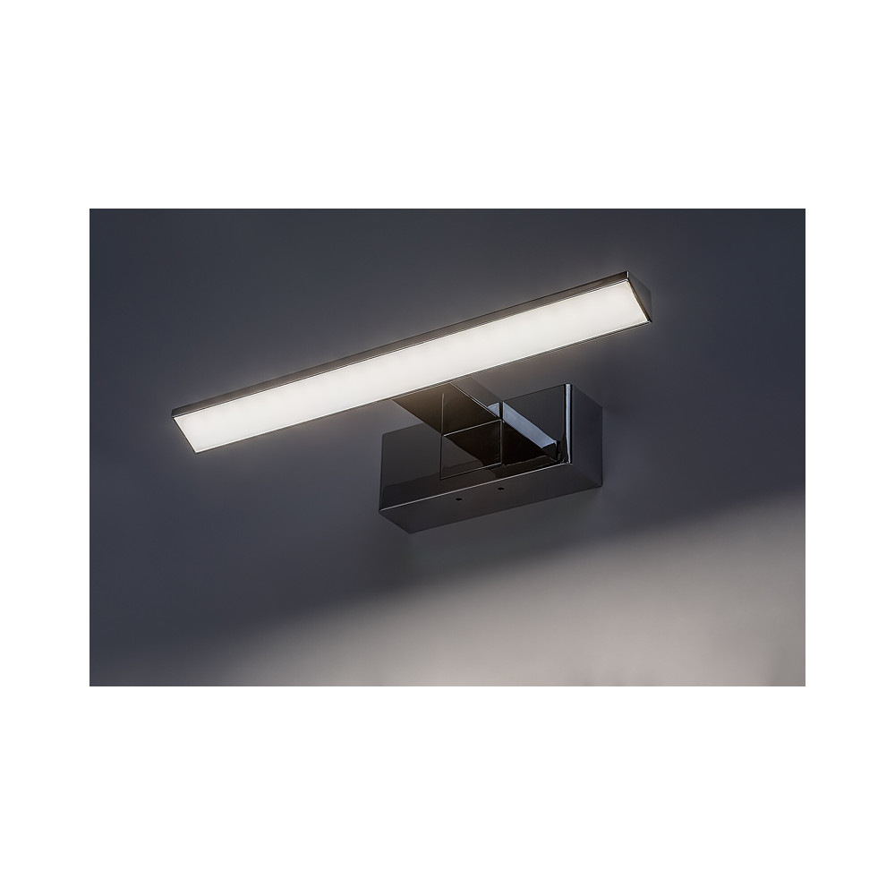 Vďaka veľkému uhlovému rozptylu svetla tento model efektívne osvetľuje celú plochu zrkadla. Kúpeľňové nástenné svetlo má stupeň ochrany IP44, čo zaručuje bezpečné používanie v mokrých priestoroch. LED technológia zabezpečuje energeticky úspornú prevádzku a dlhú životnosť.
