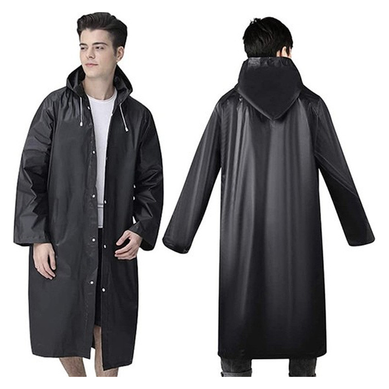DLHÝ KABÁT + KAPUCŇA – pláštenka je veľmi dlhá, navyše má kapucňu so šnúrkami. Dokonalá ochrana pred dažďom.