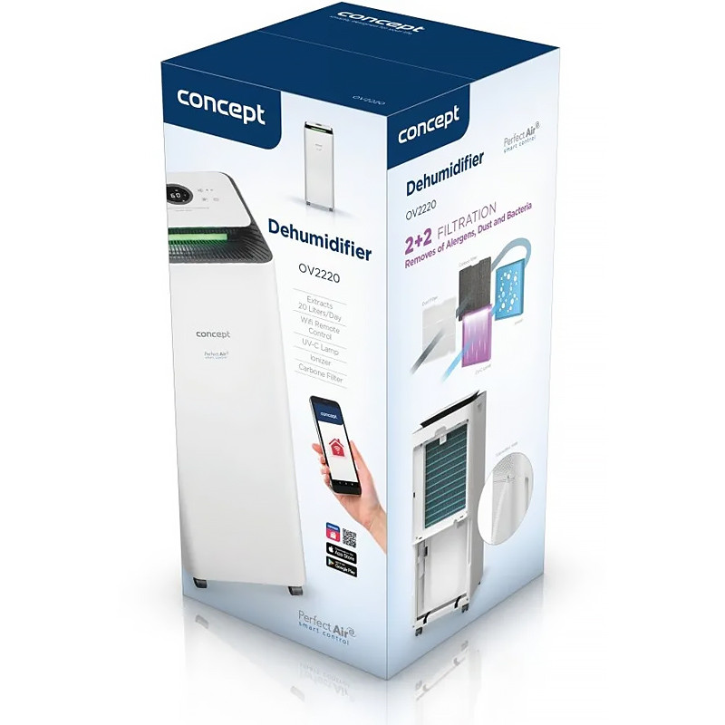 Maximálna kapacita odvlhčovania: 20 l/deň (30°C 80% RH)