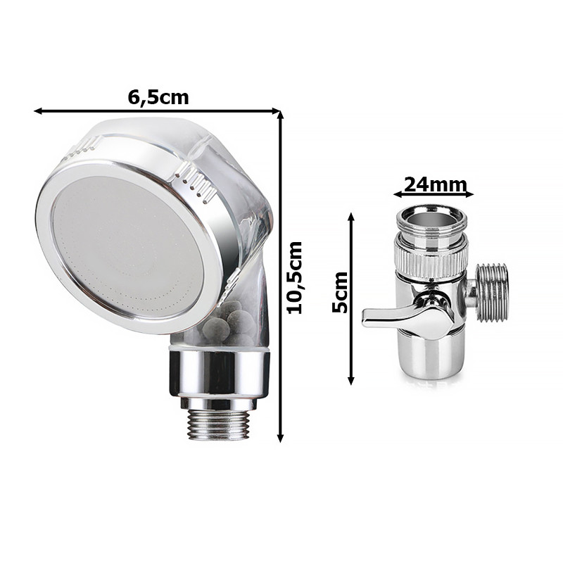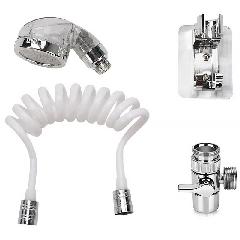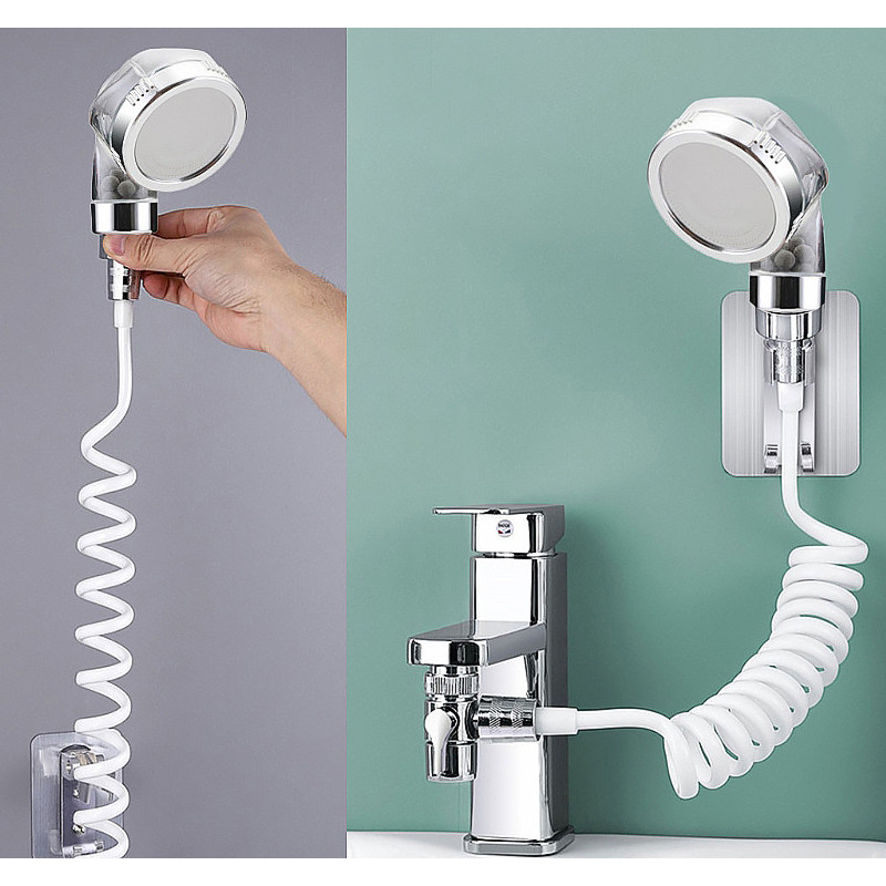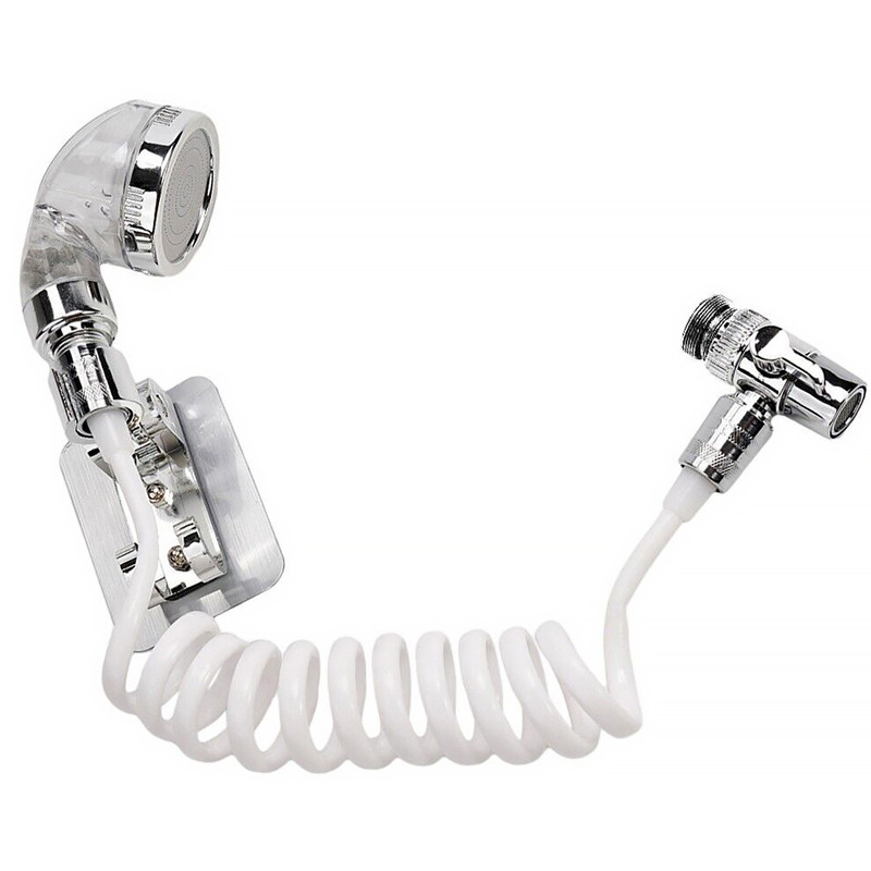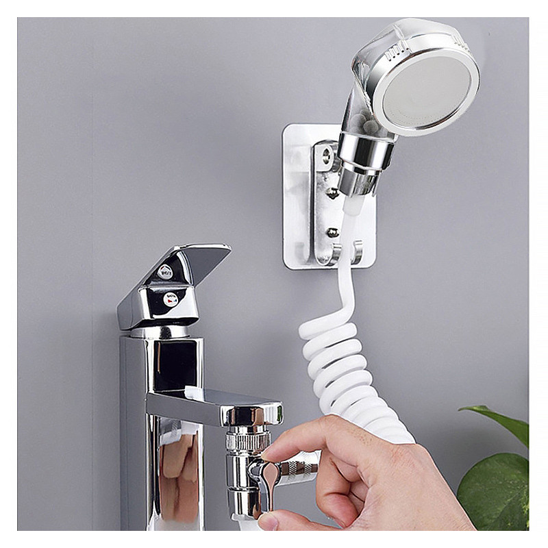 Jednoducho vyberte prevzdušňovač z kohútika a nainštalujte nový trojcestný ventil. Potom nainštalujte hadicu pripojenú k držiaku sprchy na stenu pri bočnom výstupe. Sada obsahuje aj nástenný držiak na uloženie slúchadla. Spodná časť ventilu je určená pre bežnú tečúcu vodu z vodovodu, takže inštalácia kúpeľňového nástavca vody neovplyvní prietok vody bežného umývadla.