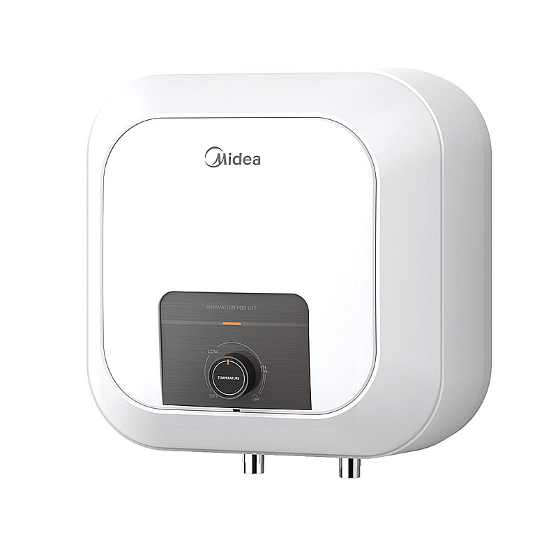 MIDEA bojler - výkon: 2000 W • objem: 10 litrov • možno inštalovať nad kuchynskú linku • ochrana: IPX4 • vertikálna montáž na stenu • ovládanie mechanické, otočný gombík • smaltovaná nádrž na vodu • smaltované vykurovacie teleso • kapilárny termostat • teplotný rozsah: 30-75°C • uzemnená pripojovacia vidlica • dĺžka napájacieho kábla: 100 cm • rozmery: 324 x 324 x 300 mm