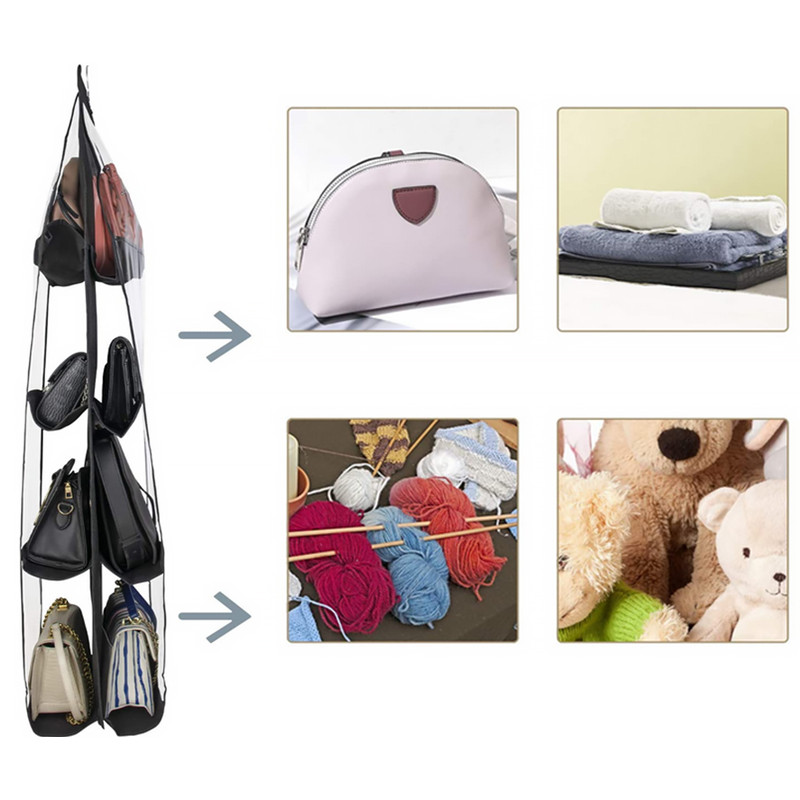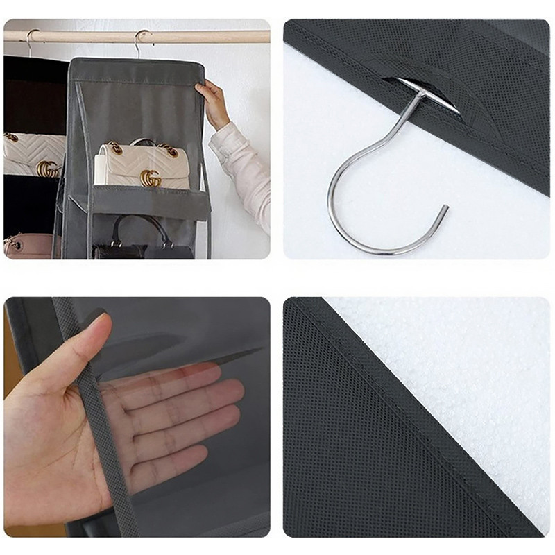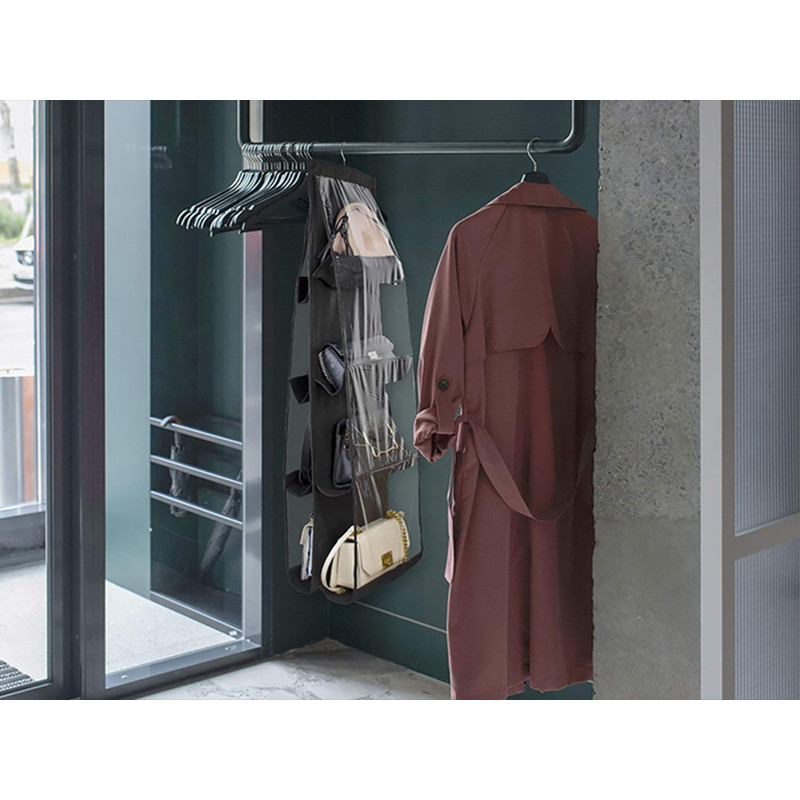 Skriňový organizér na kabelky, vešiak na kabelky ‒ závesný organizér do vašej skrine alebo šatníka. Môžete ho použiť aj na uloženie topánok, hračiek, tašiek alebo iných predmetov.