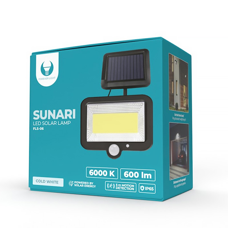 Reflektor LED so solárnym panelom+PIR FOREVER FLS-06 8W 600lm 6000K