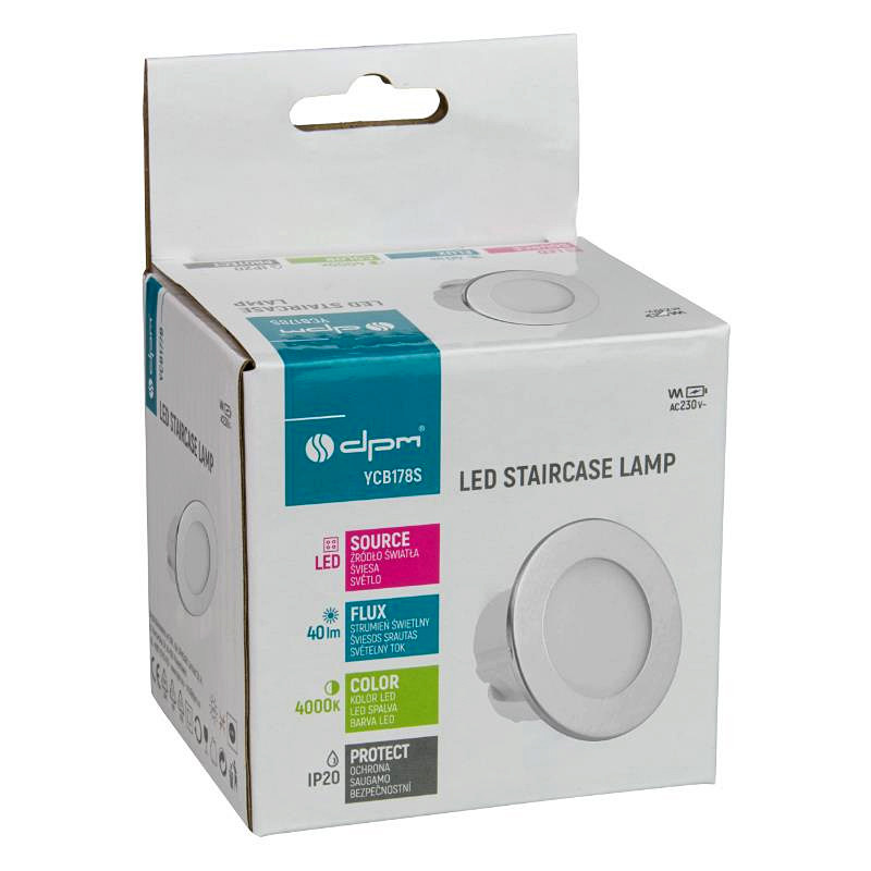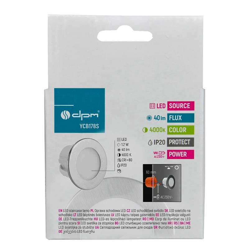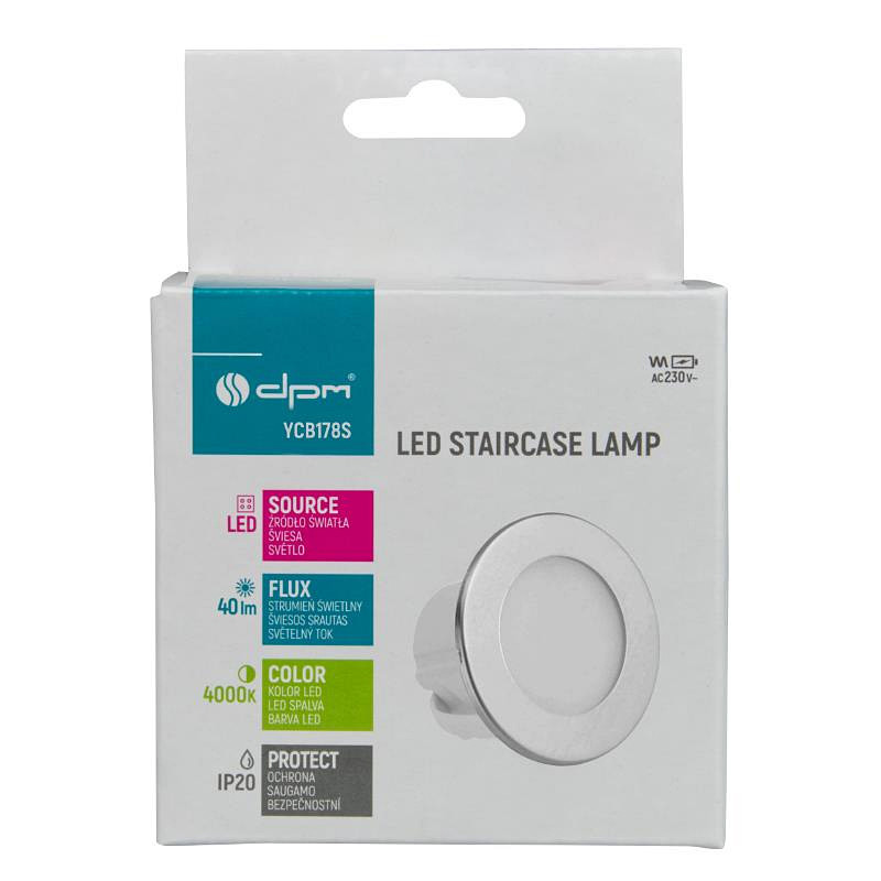 Svietidlo pozičné LED DPM YCB178S 1,2W/4000K strieborné 230V okrúhle