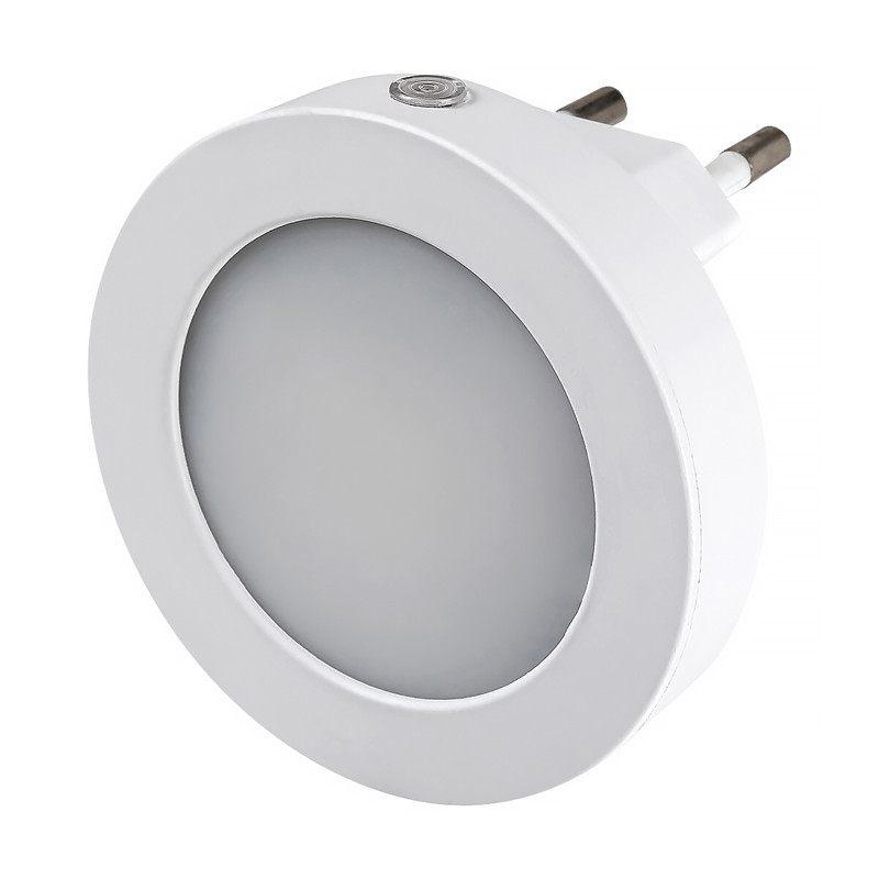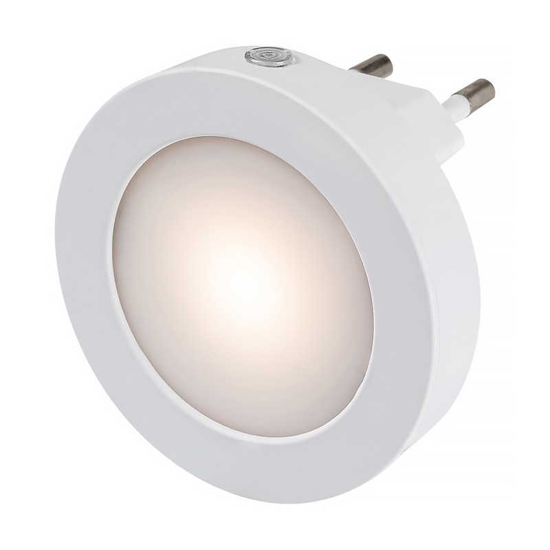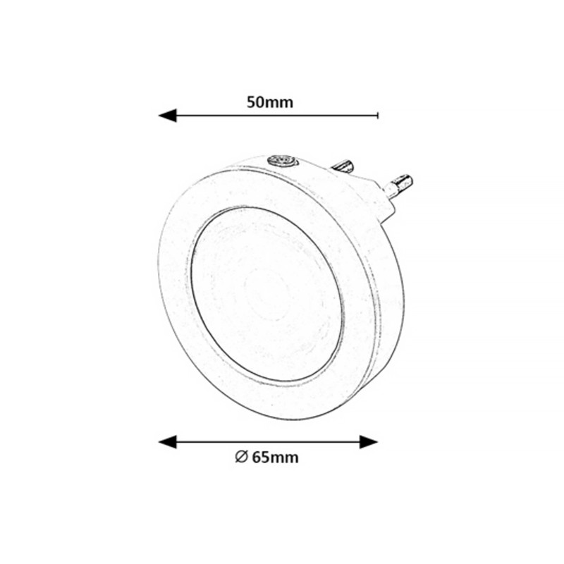 Nočné okrúhle zásuvkové LED svetielko, svetelný senzor - výkon: 0,5 W • svetelný tok: 5 lm • farba svetla: teplá biela (3000K) • priemer: 65 mm • farba: biela