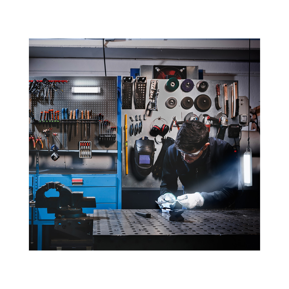 - Vysoký svetelný tok umožňuje skvelé využitie ako flexibilné a kompaktné pracovné svetlo
