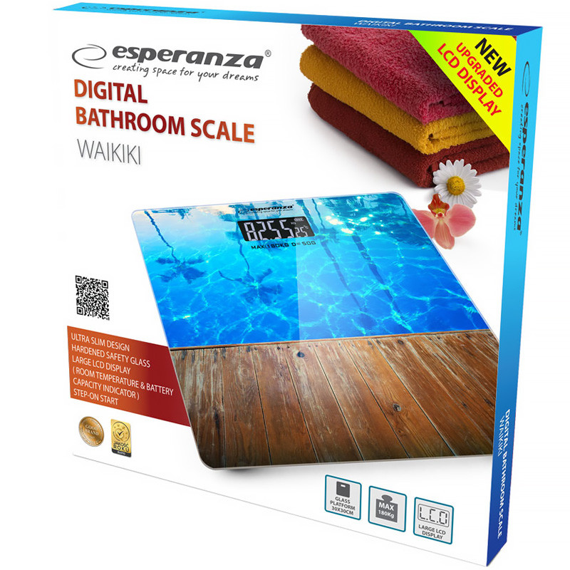 Ultratenká elektronická váha Esperanza WAKIKI je moderné zariadenie určené pre jednotlivcov, ktorí si cenia zdravý životný štýl a starajú sa o svoju fyzickú kondíciu. Vďaka presným meraniam a kompaktnému dizajnu je ideálna na domáce aj profesionálne použitie. Zariadenie vyniká elegantným dizajnom, odolnosťou a jednoduchým používaním, vďaka čomu je vynikajúcou voľbou pre individuálnych používateľov aj inštitúcie zamerané na zdravie svojich klientov.