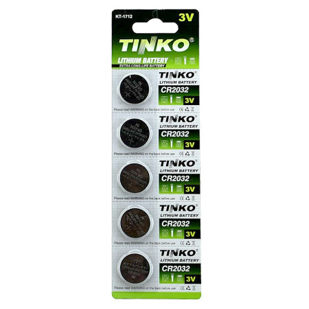 Batéria TINKO CR2032 Typ: lítiová Napätie: 3 V Rozmery: 20 x 3,2 mm cena za 1ks batérie
