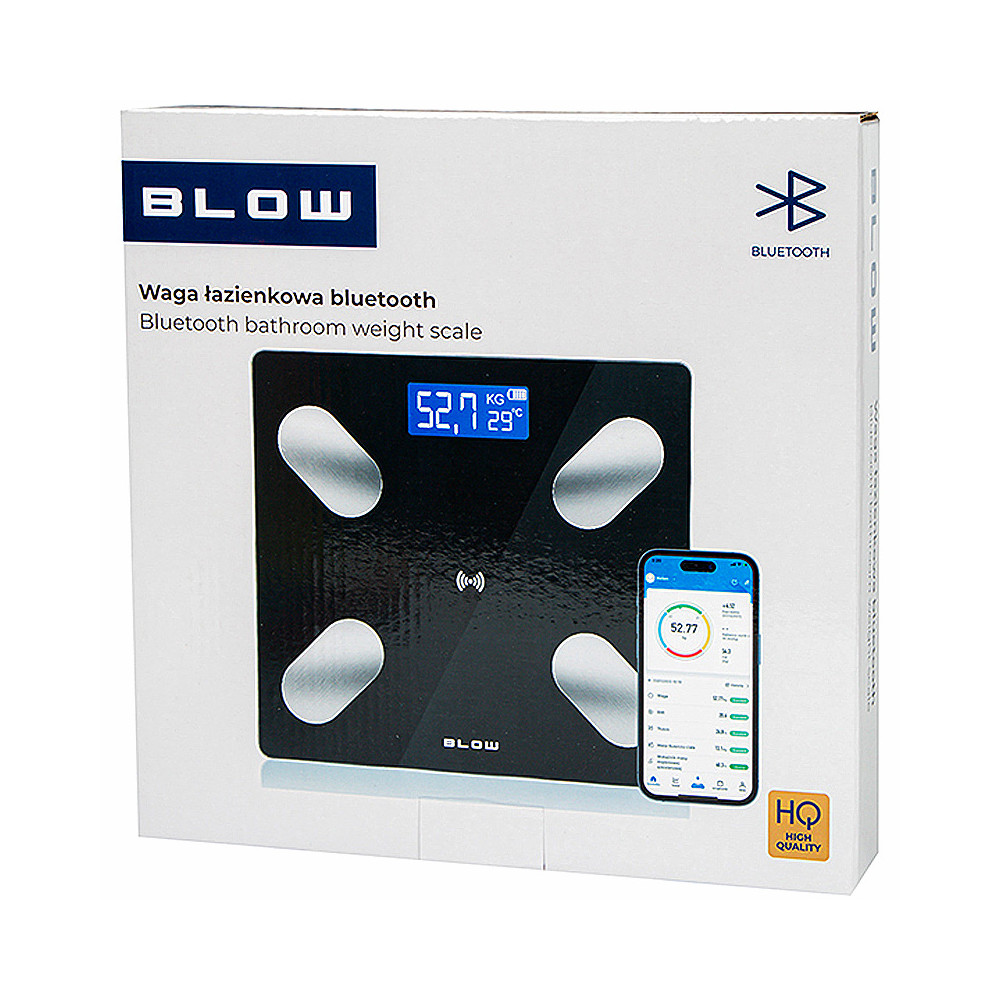 Táto inteligentná kúpeľňová váha s rozhraním Bluetooth vám umožňuje prenášať merania do mobilných zariadení so systémom Android a iOS. Táto inovatívna váha je ideálna pre tých, ktorí chcú presne sledovať svoju hmotnosť, zloženie tela, úroveň hydratácie a mnoho ďalších telesných parametrov. Kúpeľňová váha BLOW je SMART zariadenie s pripojením Bluetooth, viac ako 25 funkciami a vysoko presnými meraniami.