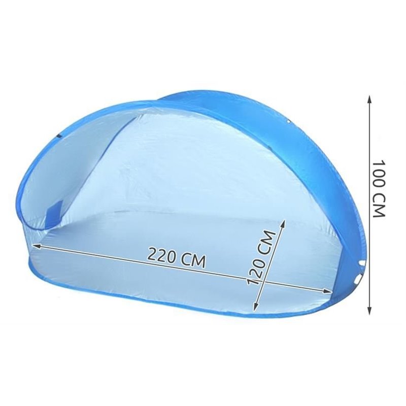 Plážový stan, polootvorený POP UP - chráni pred vetrom a nadmerným slnkom a zospodu pred vlhkosťou a pieskom na pláži. Plážový stan, sa odporúča najmä pre rodiny s deťmi. Ideálne na popoludňajšie zdriemnutie - poskytuje upokojujúci tieň bez opustenia pláže. Plášť stanu dokonale chráni pred škodlivým UV žiarením . Kostra stanu je vyrobená z odpružených vláknitých drôtov - vďaka ktorým sa po vytiahnutí z poťahu rozloží do 2 sekúnd.
