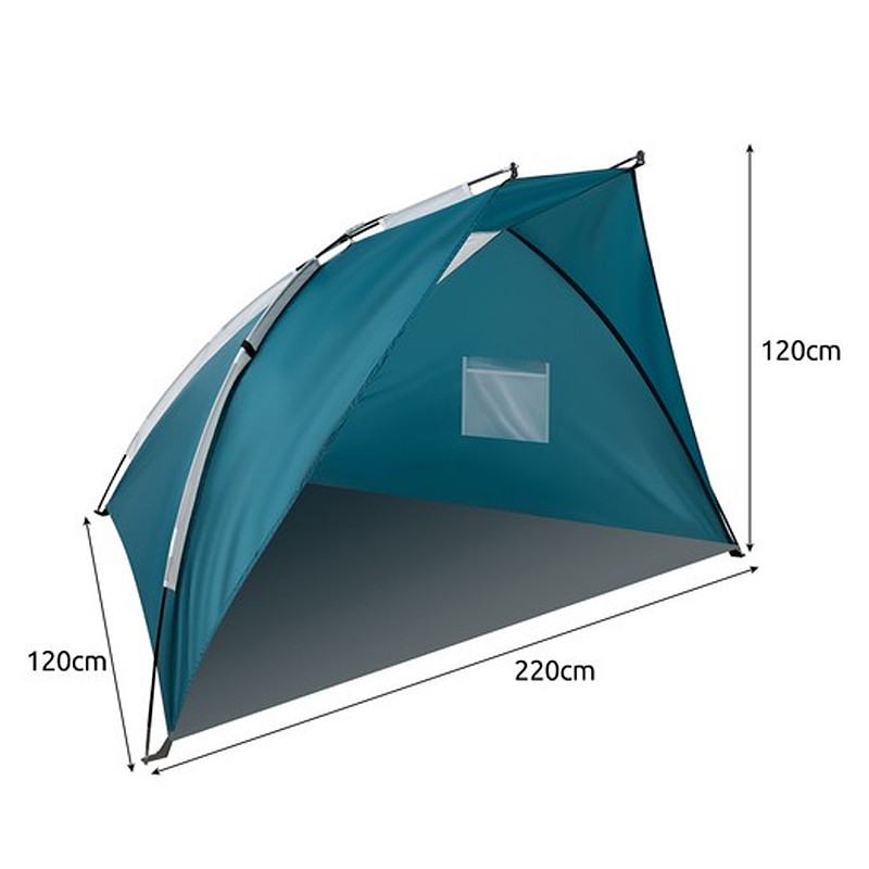 OCHRANA - účinne chráni pred nadmerným slnkom, ale aj pred vetrom, čo je mimoriadne dôležité, ak idete na pláž s deťmi a chcete im poskytnúť bezpečný odpočinok a tieň. Ľahko do nej schováte svoje veci bez obáv, že sa vám taška alebo oblečenie zasypú pieskom. Napriek nízkej hmotnosti a polootvorenej konštrukcii je stan stabilný.