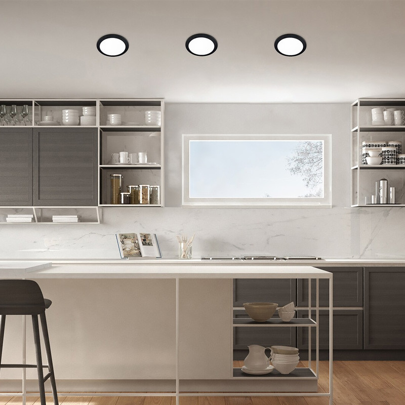Podhľadové LED stropné svietidlo, čierne okrúhle, 12cm.
