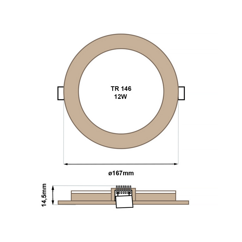 Kruhový vstavaný LED panel Trixline TR-146 s výkonom 12W so svetelným tokom 1008lm a neutrálnou bielou farbou svetla 4200K. Pôsobivý design v dekore dreva. Panel je vyrobený z kvalitného hliníka.