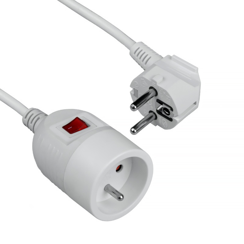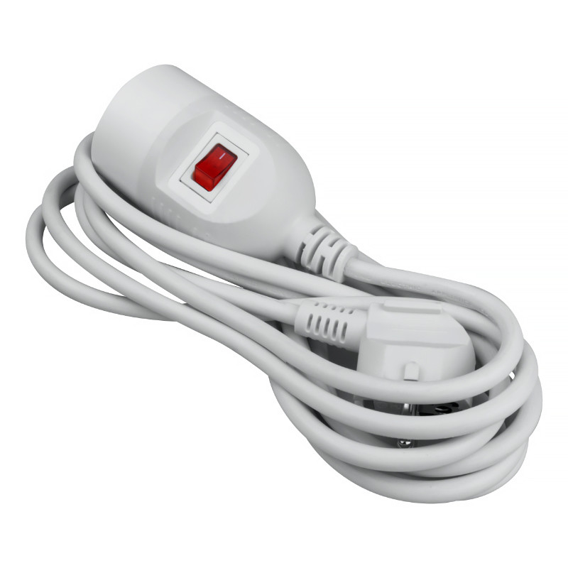 1-zásuvkový predlžovací kábel s vypínačom - dĺžka: 3 m • max.10A (2300W) • kábel: 3G1 mm2 • farba: biela
