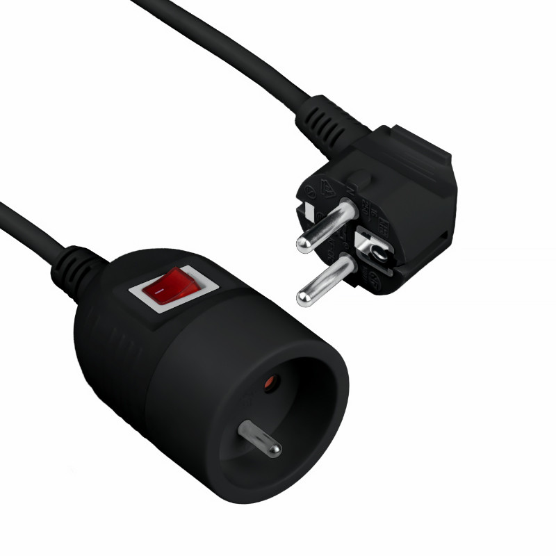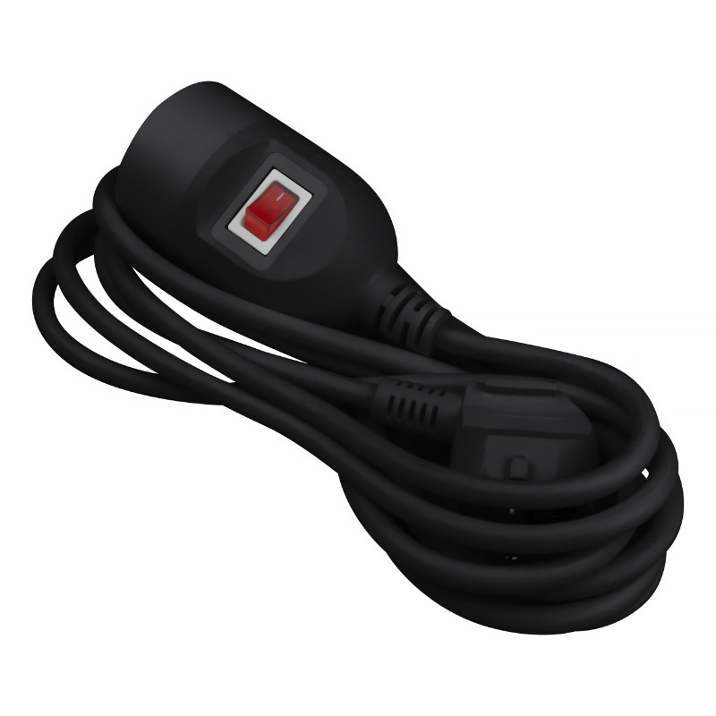 1-zásuvkový predlžovací kábel s vypínačom - dĺžka: 3 m • max.10A (2300W) • kábel: 3G1 mm2 • farba: čierna
