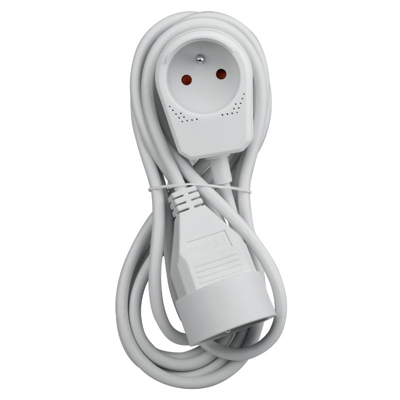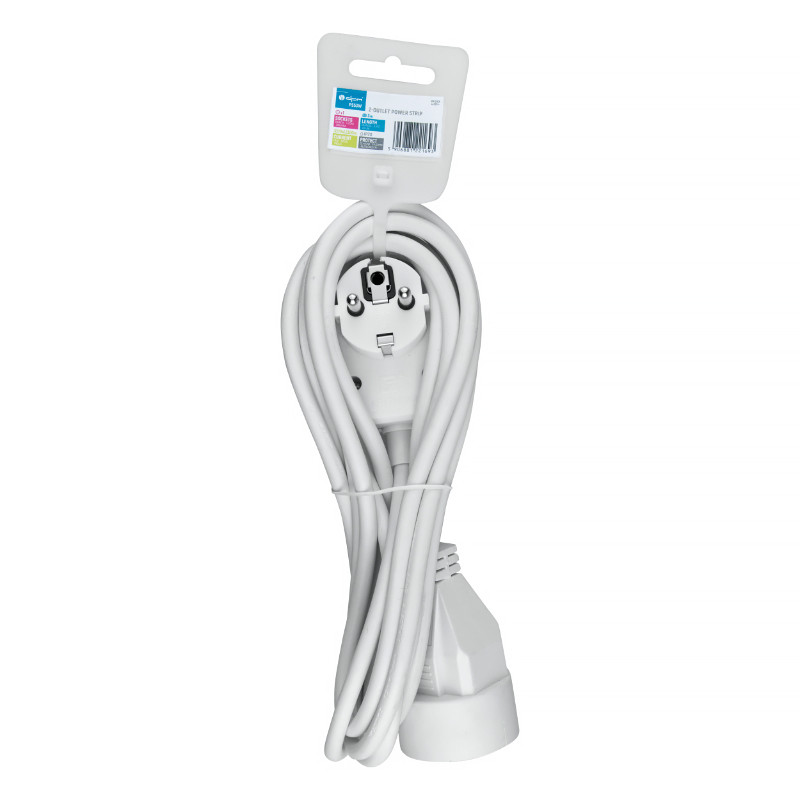 2-zásuvkový predlžovací kábel - dĺžka: 3 m • max.10A (2300W) • kábel: 3G1 mm2 • zástrčka so zásuvkou • farba: biela