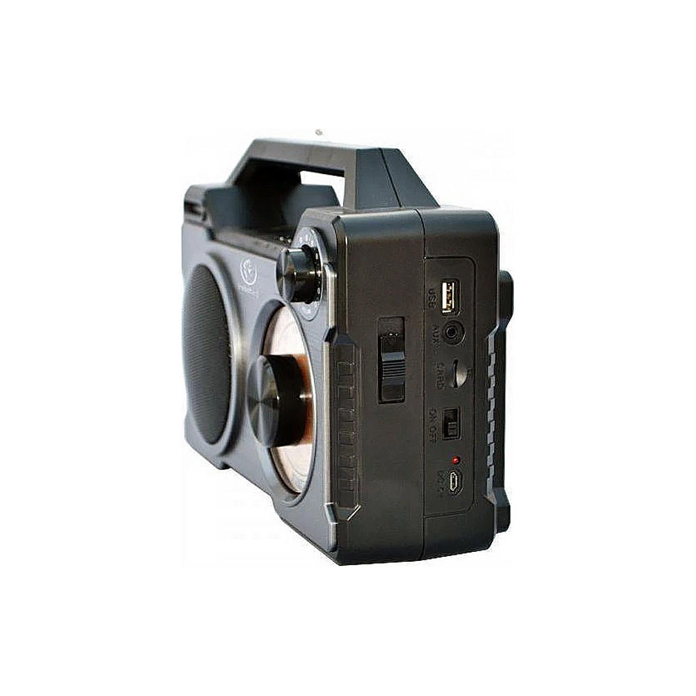 Prenosné rádio s technológiou Bluetooth 5.0 ovládané smartfónom alebo vstavanými tlačidlami. Vďaka vstavanej 1500mAh batérii vám umožní počúvať obľúbenú hudbu mnoho hodín. Má množstvo režimov: bluetooth, FM rádio, microSD karta, AUX, vďaka čomu je zariadenie mimoriadne funkčné a umožňuje vám počúvať hudbu z rôznych zdrojov. Výkon reproduktora je 10W. Doba nabíjania 2hodiny.