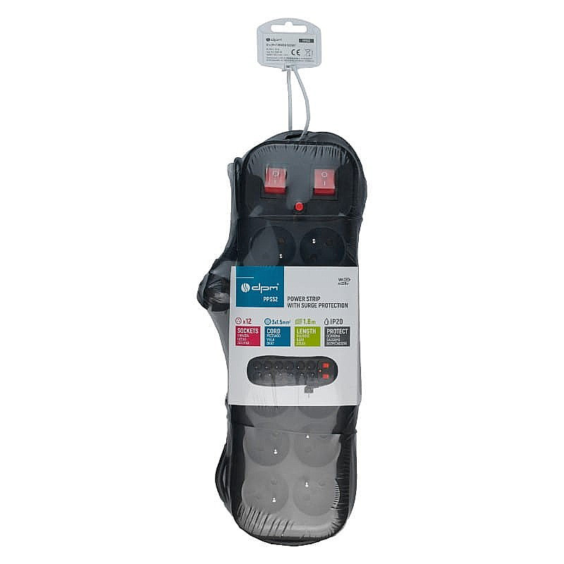 Prepäťová ochrana 1,8m/12z+2xV DPM PPS52 PO1812VBK čierna