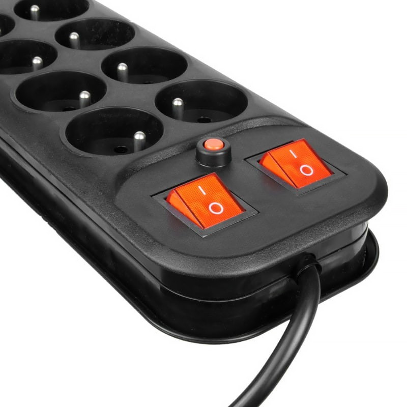 Dvojradový predlžovací kábel • 12 zásuviek • 2 vypínače • čierny • dĺžka 1,8 m