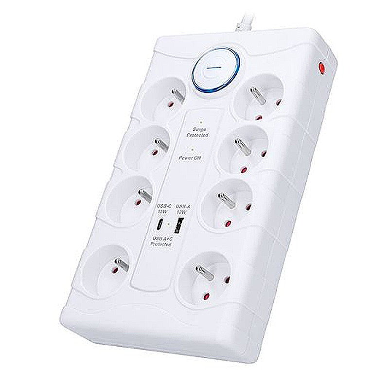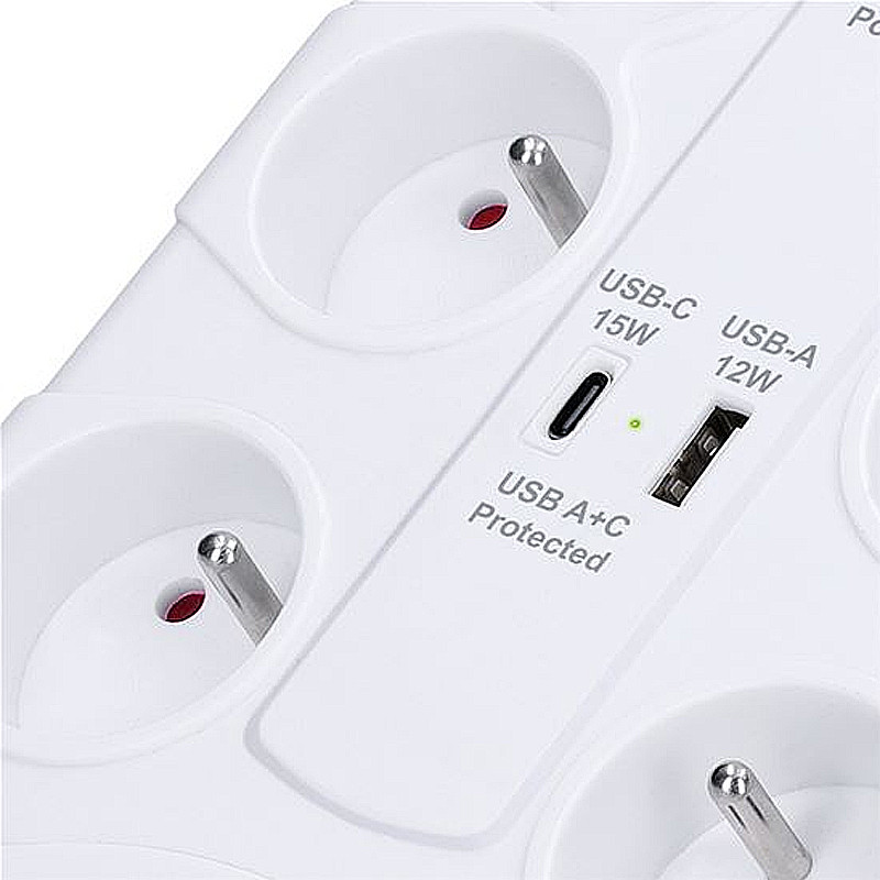 Spoľahlivá prepäťová ochrana s integrovanou USB nabíjačkou chráni vaše zariadenie proti náhlym výkyvom napätia. Vďaka ôsmim zásuvkám a dvom USB portom je ideálny do domácnosti aj kancelárie. S maximálnou záťažou až 3680 W zvládne aj energeticky náročnejšie spotrebiče.