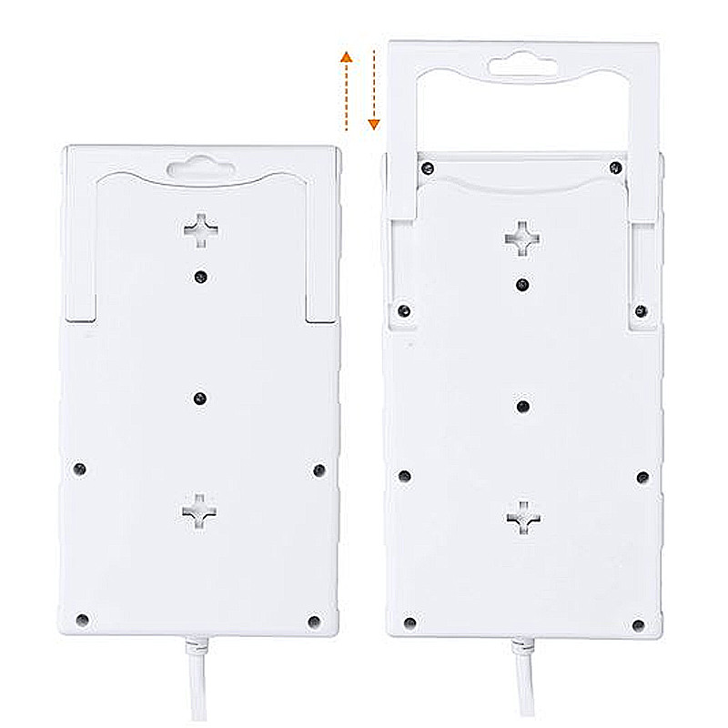 Robustný, dva metre dlhý prívodný kábel poskytuje flexibilitu pri umiestnení. Dve oddelené zásuvky pojmú aj väčšie napájacie adaptéry bez prekážania ostatným zásuvkám. Výsuvný držiak na zadnej strane slúži na usporiadanie káblov, prípadne na zavesenie alebo prenášanie. Nechýbajú ani montážne otvory na pevné uchytenie.