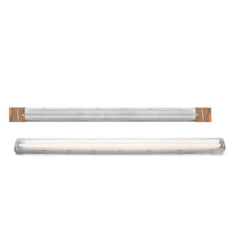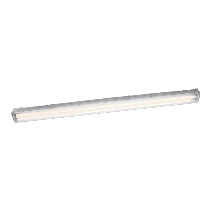 Vlhkotesné svietidlo s LED trubicami, vhodné na použitie v prašných a vlhkých vonkajších priestoroch vďaka vysokému krytiu IP - výkon: 2x 19W • svetelný tok: 4370 lm • farba svetla: 4000K (neutrálna biela) • krytie: IP65