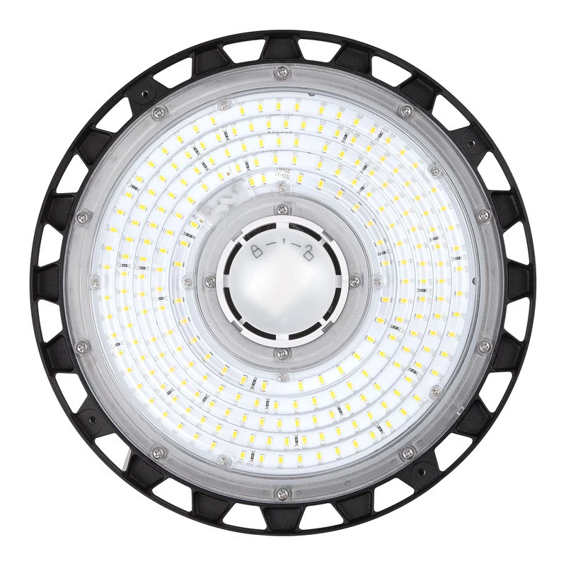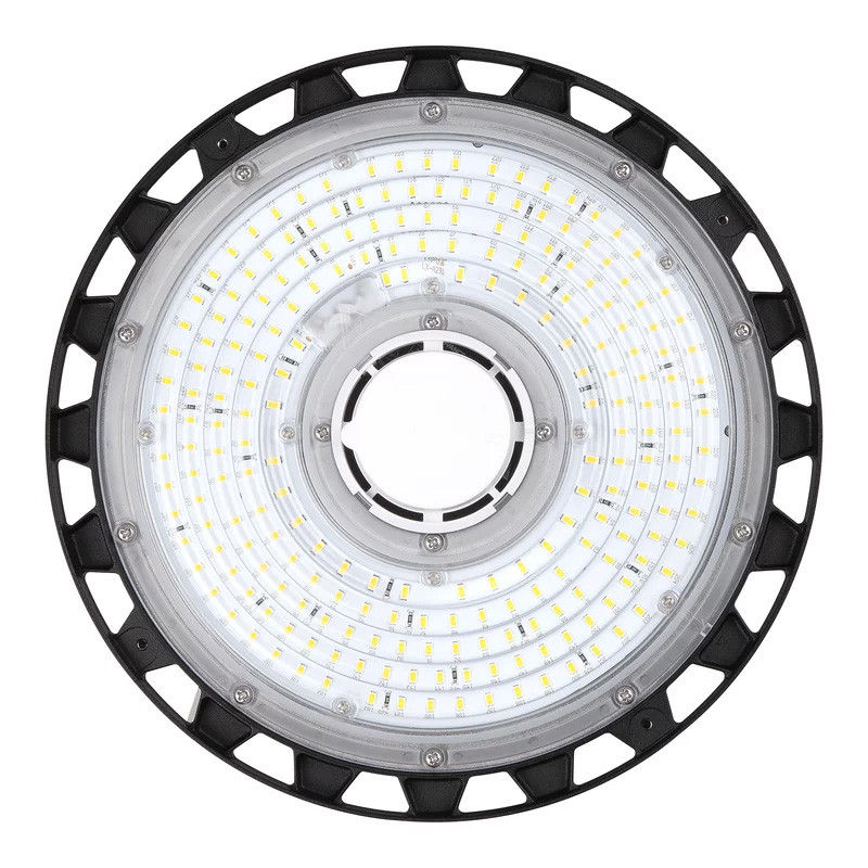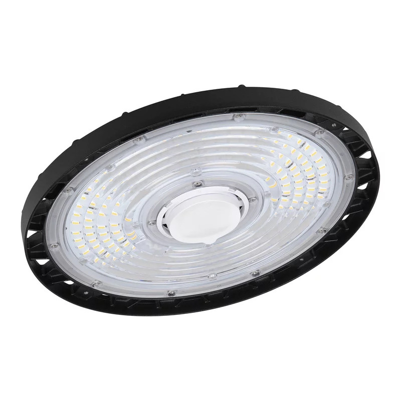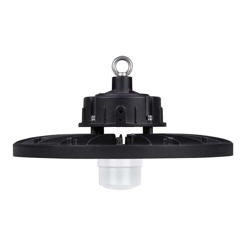 Vysokovýkonné závesné/stropné LED High Bay svietidlo so senzorom - výkon: 87 W • svetelný tok: 13 000 lm • neutrálna biela (4000K) • napätie: 220-240V • krytie: IP65 • uhol lúča: 110° • priemer: 280 mm. Vysoký strop, náhrada za vysokoobjemové svietidlá s ortuťovými alebo halogenidovými výbojkami.