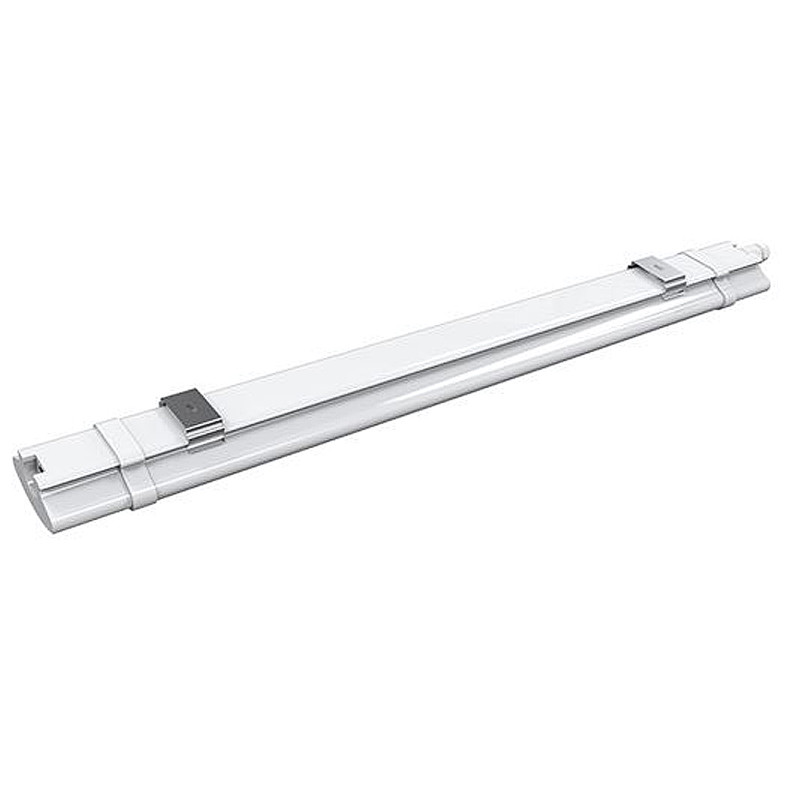 Svietidlo je vyrobené z odolného polykarbonátu a má vysoké krytie IP65 - je prachotesné a vodotesné, ideálne do dielní, garáží, pivníc alebo priemyselných priestorov. Rozmery: 1240x78x40 mm. Napájanie: vstup AC 220-240 V, výstup 405-430 V 80 mA.