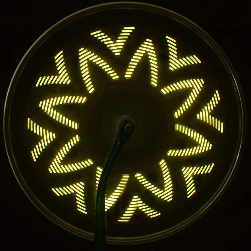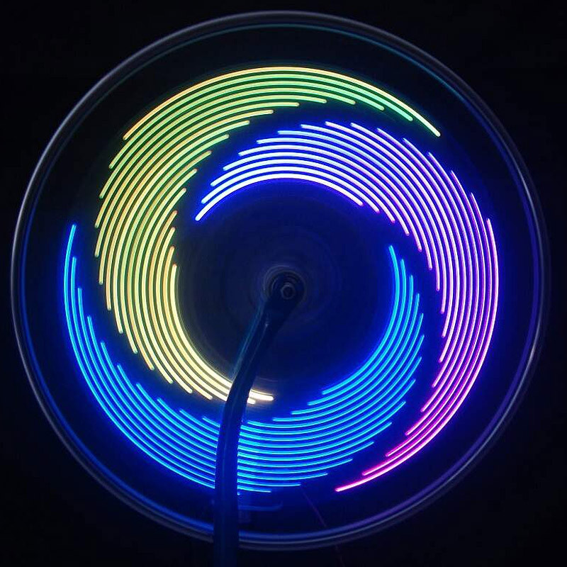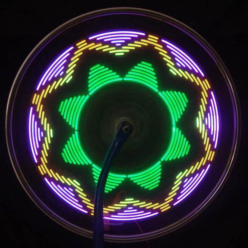LED svetlo namontované na kolese bicykla poskytuje nielen farebnú dekoráciu ale aj bezpečnosť pre cyklistu. 32 farebných LED diód, ktoré zobrazujú 21 rôznych vzorov viditeľných pri pohybe kolesa. Každý vzor sa automaticky mení každé 4 sekundy. Vzor je najlepšie viditeľný pri rýchlosti približne 20 km/h. Produkt je napájaný tromi AAA /LR03 batériami (sú súčasťou balenia). Vďaka univerzálnemu uchyteniu je toto LED svetlo kompatibilné s väčšinou bežne používaných bicyklov.