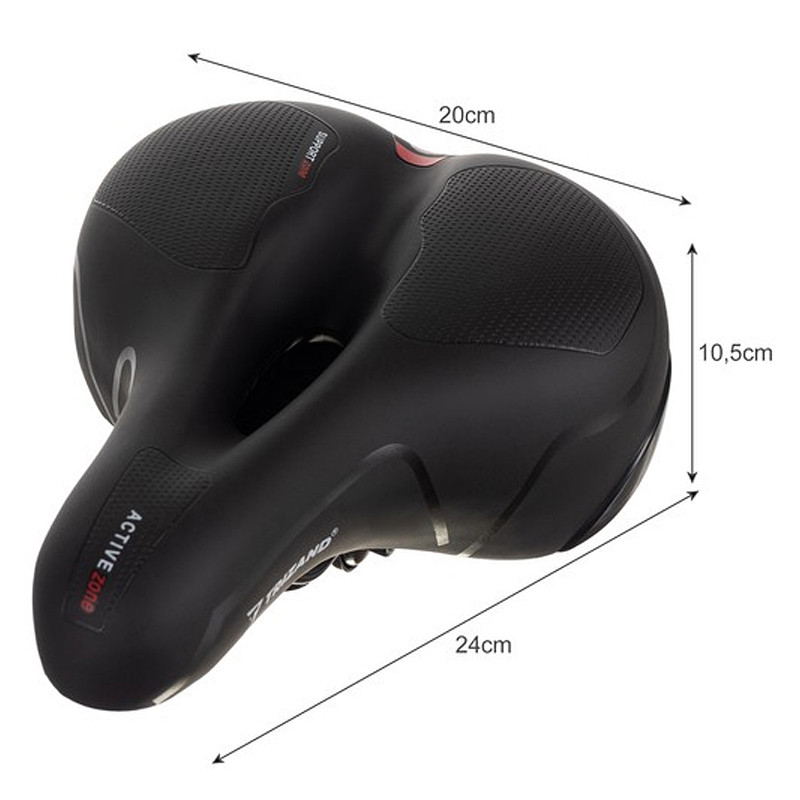 Moderné cyklistické sedadlo je mäkké a pohodlné. Navyše veľmi dobre tlmí vibrácie, vďaka čomu je jazda na bicykli potešením. Sedadlo je vybavené 2 pružinami a špeciálnou penou, ktorá tlmí nárazy pri jazde. Súčasťou súpravy je aj pláštenka proti dažďu.