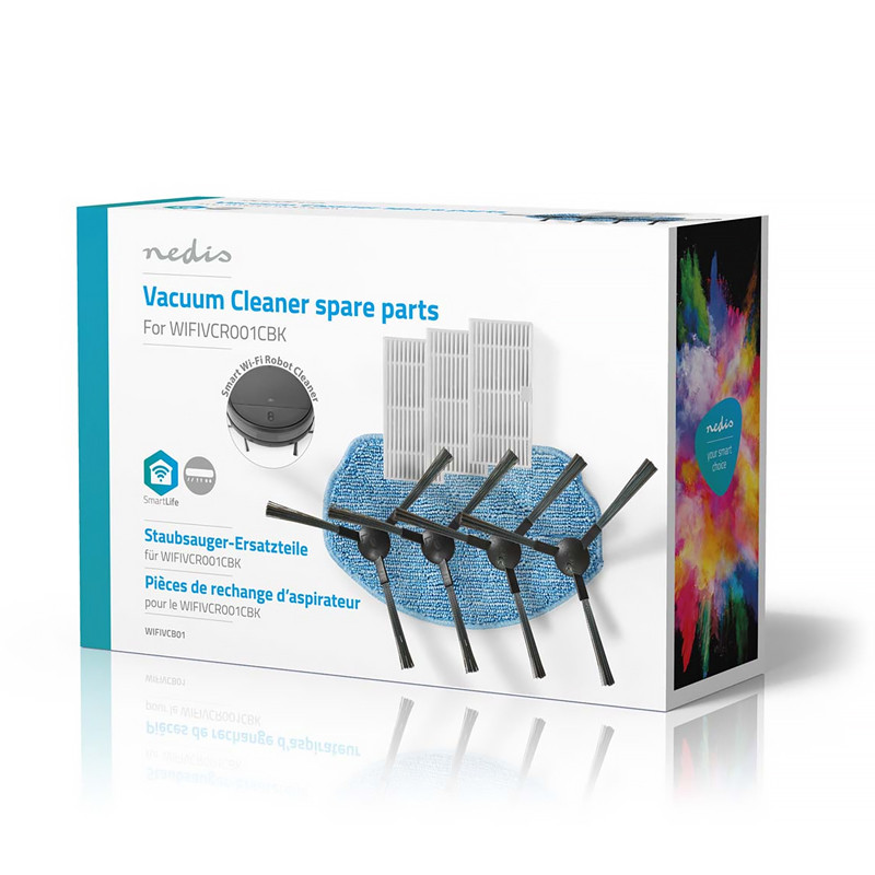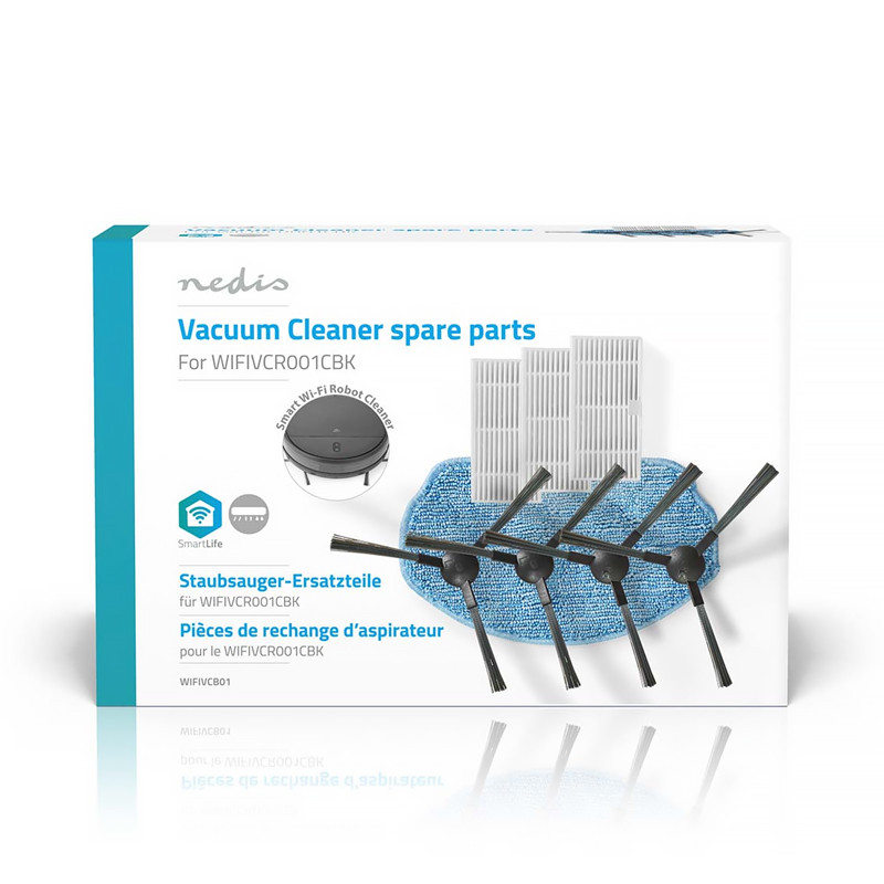 Na optimalizáciu výkonu a predĺženie životnosti vášho robotického vysávača odporúčame pravidelne vymieňať filtre, kefy a mop. Táto sada je vhodná exkluzívne pre model WIFIVCR001CBK.