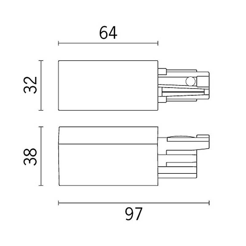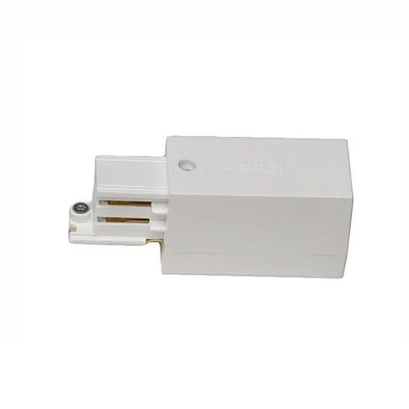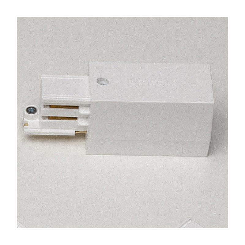 Koncový posuv(napájač) s kontaktom so zemou vpravo pre iGuzzini a Ivela - biela farba • rozmery: 97x32x38 mm • hmotnosť: 0,05 kg