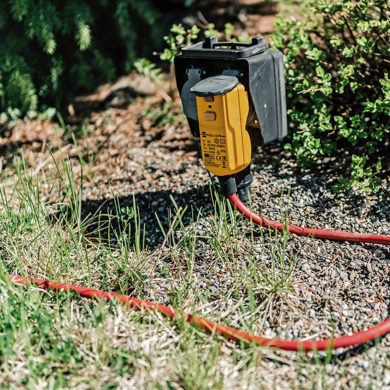 Zástrčka na ochranu osôb je vďaka druhu ochrany IP55 vybavená ochranou proti prachu a striekajúcej vode, a tým mimoriadne vhodná na používanie v exteriéri. Chráni pred nebezpečnými zásahmi elektrickým prúdom. Ochranná zástrčka okamžite detekuje chybové prúdy a v sekunde ich odpojí od siete. Vypínač chybového prúdu s dvojpólovým vypnutím: vhodný pre káble 3G0,75² až 3G2,5² • napätie: 250 V • max.prúdové zaťaženie: 16 A • Schuko zástrčka (typ E a F)