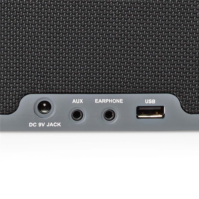 - Port AUX – na prehrávanie hudby z akéhokoľvek zariadenia s 3,5 mm stereo audio konektorom