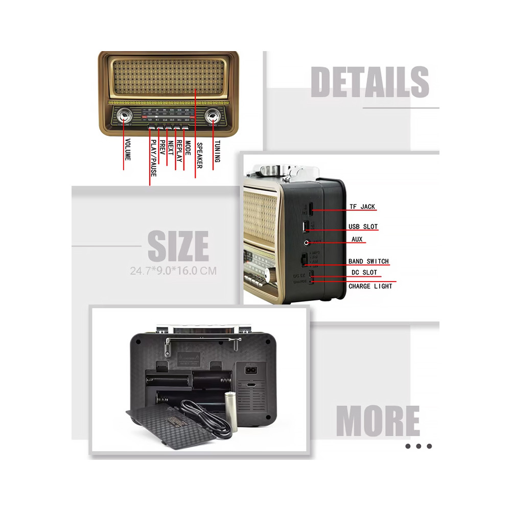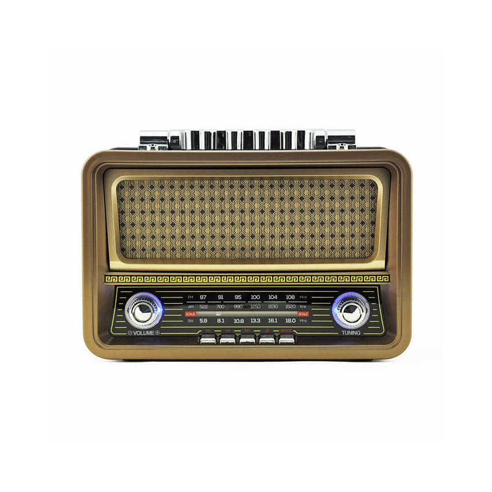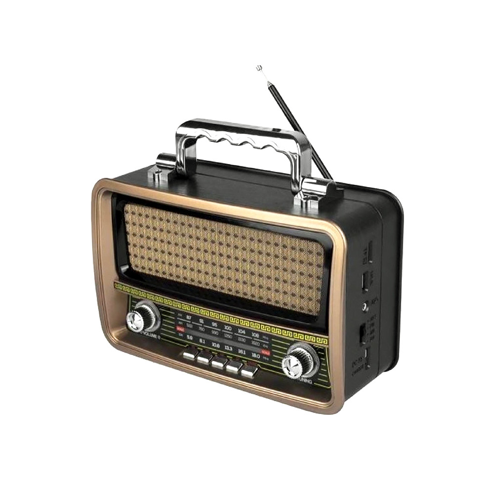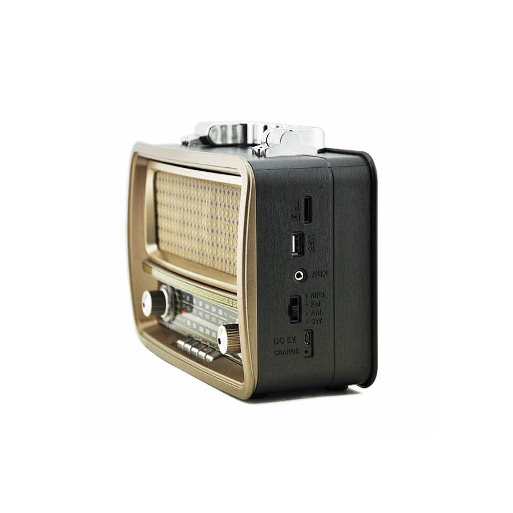 Multifunkčné prenosné rádio, vybavené FM rádiovým tunerom a množstvom konektorov pre prehrávanie hudby z externých zdrojov.