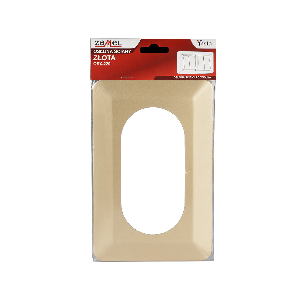 Dvojitý zlatý nástenný kryt, typ: OSX-220-ZLO • plastová podložka, používaná pre zapustené zásuvky a vypínače v dvojmodulových sadách • zabraňuje znečisteniu steny