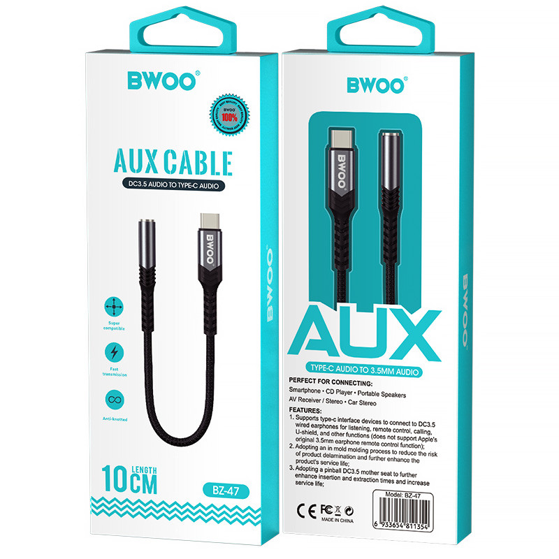 Kábel USBC-JACK3,5st zásuvka čierny 10cm BWOO BZ-47